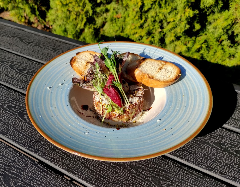 Склад: телятина, крем-сир, каперси, цибуля, солоний огірок, гірчиця, яйце перепелине